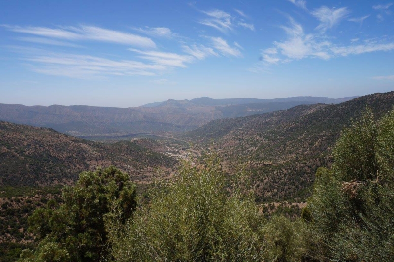 31/12: Timoulay - Tourarine. Après les villages d’Izouaghnz et de Tassila, nous regagnons de l’altitude en passant le col de Tizi Izouarhne à 1300m, puis vers l’ouest en suivant la piste des crêtes, avec un magnifique panorama. Nuit en bivouac dans la forêt.
