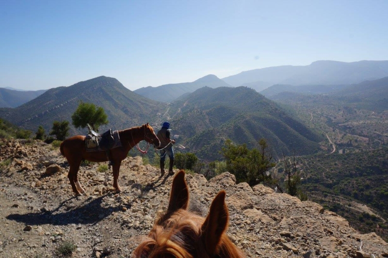 Randonnée à cheval au Maroc pour finir l'année 2020 et débuter 2021 à cheval, entre le l'Atlas et les plages de l'Atlantique. Vous partez de la côte pour atteindre les montagnes. Vues splendides sur les vallées profondes et encaissées, passages dans des gorges, au cœur des palmeraies, sur des sentiers fréquentés seulement par les villageois. Quelques franchissements à pied sont inévitables. Les flancs de montagnes sont couverts de cultures d’amandiers en terrasses et de plantes aromatiques (thym, lavande, romarin…) qui permettent aux populations Berbères de produire un excellent miel. Les villages (douars) à flanc de montagne, ou dans les palmeraies qui bordent les oueds, en fond de vallées, sont bâtis en pierres, les toits sont en torchis.