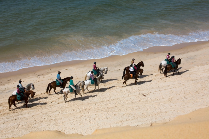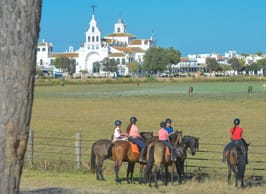 Une semaine exceptionnelle de randonnée à cheval en Andalousie , au cœur de la culture flamenco, de l'élevage des meilleurs chevaux andalous, Vous montez des chevaux de pure race espagnole (Pura Raza Española) sur des sentiers sablonneux du Parc National de Doñana, en discrète compagnie de lynx ibériques. Vous passez deux jours sur la vaste plage atlantique, séjournez dans l'unique El Rocío, visitez l'école royale d'équitation, la Real Escuela Andaluza Del Arte Ecuestre (en mai, vous participez à la Feria del Caballo de Jerez, le plus prestigieux événement équestre au monde). Vous visiterez le somptueux palais royal, le Real Alcazar de Séville, rendu célèbre par la série télévisée Game of Thrones. Durant cette superbe randonnée à cheval, vous êtes logé dans une finca, en compagnie des chevaux.