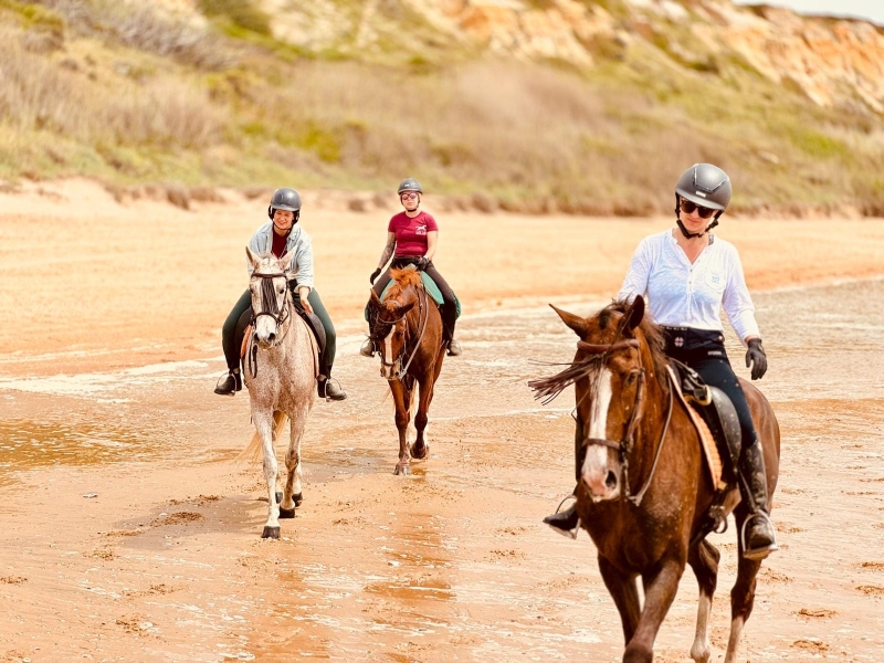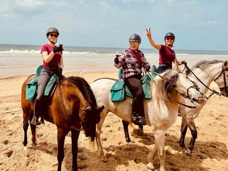 Jeudi. Dunes et plage. Après le petit-déjeuner, vous rejoignez les chevaux et profitez de la plage, où vous passez la majeure partie de la journée. Vous profitez du grand air, de la brise marine, des promenades sur les dunes et des galops sur le sable.