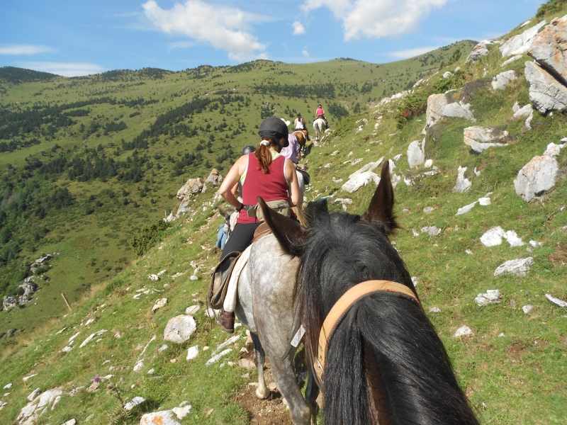 Randonnée réservée aux bons cavaliers: être à l'aise aux trois allures (pas, trot, galop) en extérieur.