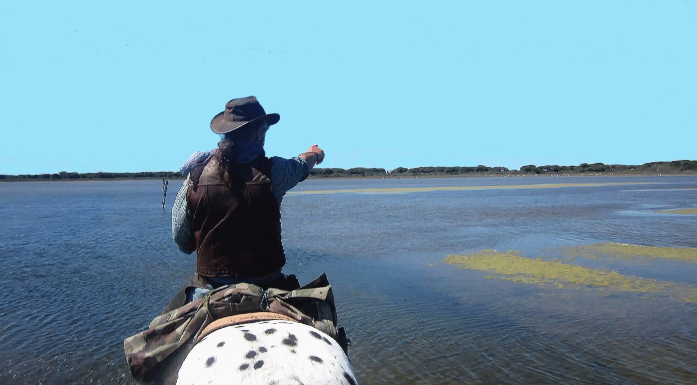 Jour 6: Vendredi: Les Saintes Maries de la Mer - Méjanes. Matinée sur la plage et pique-nique sorti des sacoches (car les voitures ne sont pas autorisées) sous une laupio (abri typique de la Camargue). Après-midi, départ pour Méjanes en longeant l'étang du Vacarès: superbes paysages au coeur de la Camargue en longeant l'étang avec ses nombreux flamants roses. Fin de randonnée à Méjanes, embarquement des chevaux dans le camion et transfert des cavaliers pour Lauris pour le dernier repas et la dernière nuit cette première partie de votre voyage à cheval.