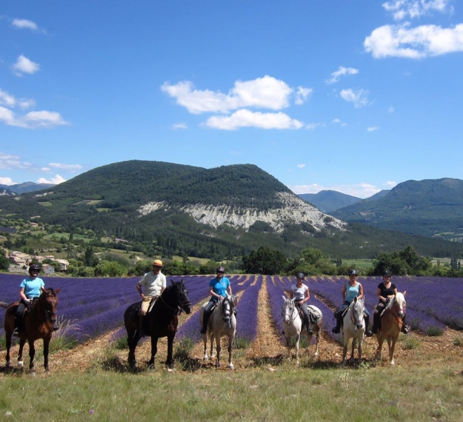 Jour 13 - Vendredi: Montbrun les Bains - Mévouillon. Ce matin, le Géant de Provence: le Mont Ventoux, nous domine au sud du haut de ses 1910m. Nous longeons le Toulourenc, agréable ruisseau rafraîchissant, traversons des villages typiques, et entrons dans la Drôme provençale: une alternance de collines boisées et plantées de lavandes. L’après-midi, nous nous dirigeons vers Mévouillon où nous attendent le camion et le minibus qui ramèneront chevaux et cavaliers à Lauris, dans le Luberon.