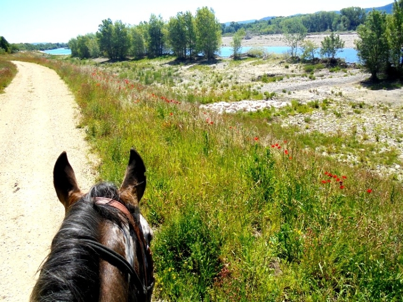 Jeudi: Journée de randonnée à cheval jusqu'aux bords de la Durance. Pique-nique en bord de rivière.