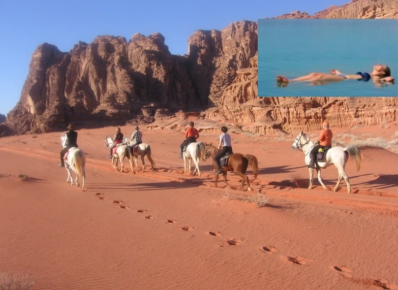 Cette randonnée à cheval en Jordanie est unique: Au départ de la réserve de Dana, en passant par le château de Shobak, Pétra, Rajif et terminez votre rando à cheval dans un des plus beau site du monde: le Wadi Rum à cheval ! 7 ou 8 jours à cheval, plus de 200 km de pistes, sur un itinéraire varié: des montagnes du nord jusqu'au désert du Wadi Rum. Sur nos chevaux de qualité sélectionnés pour leur endurance, leur courage et leur gentillesse. L'itinéraire emprunte la Route des Rois et des anciennes caravanes: vous découvrez des paysages variés, ainsi que des tribus du nord de Pétra et les bédouins du grand sud Jordanien. Après votre rando à cheval: détente en Mer Rouge et en Mer Morte en option !
